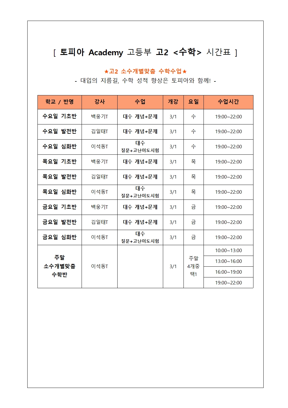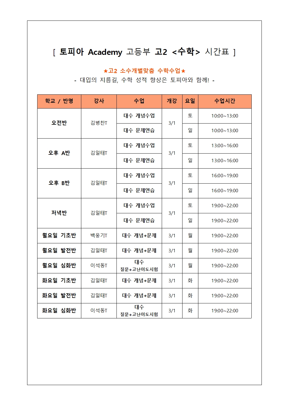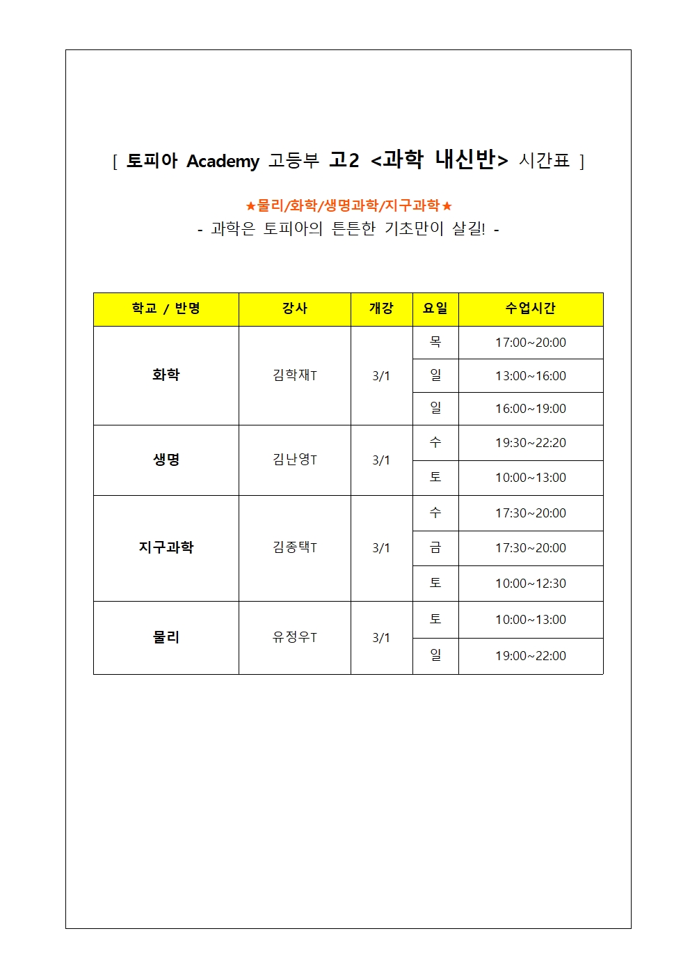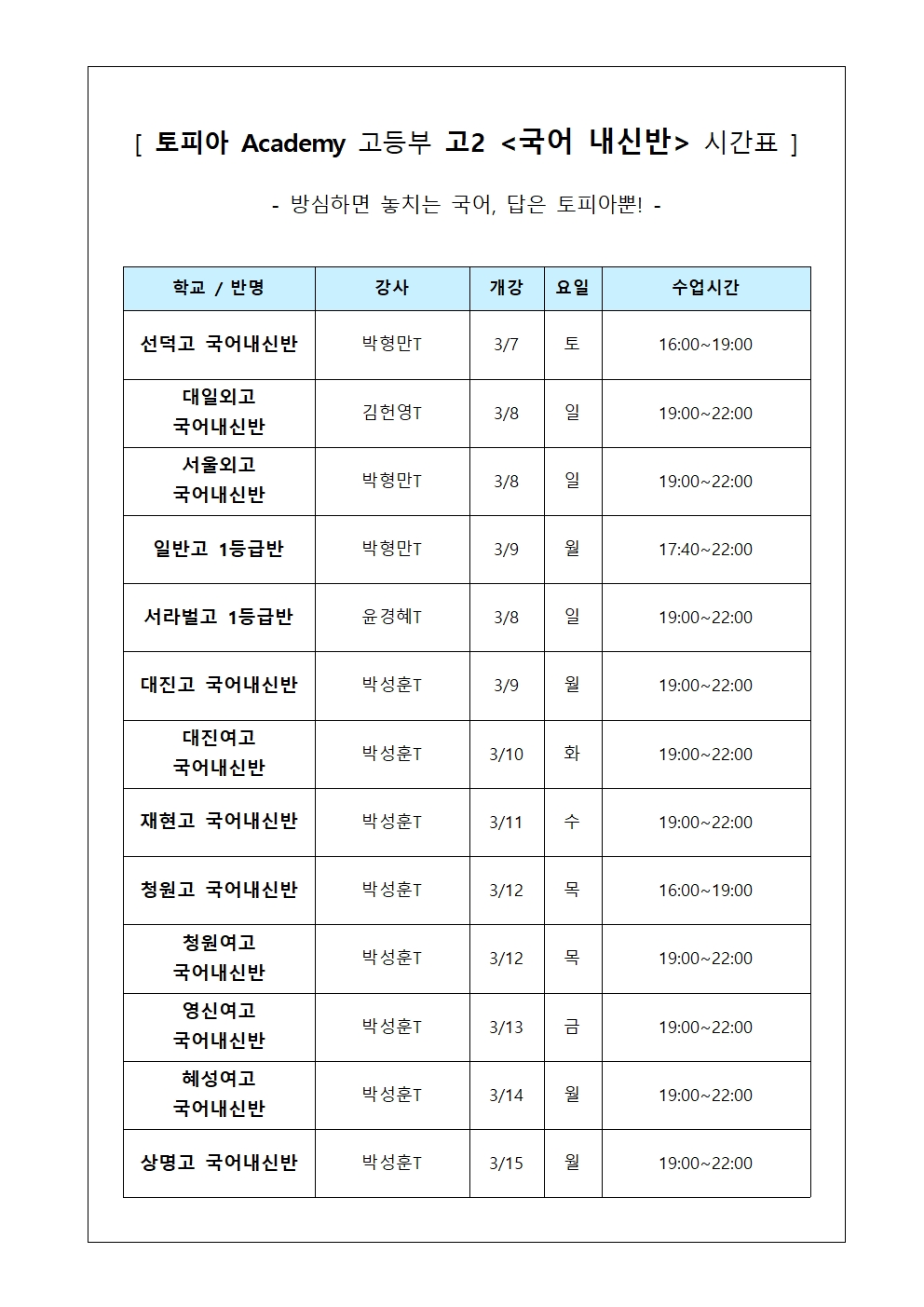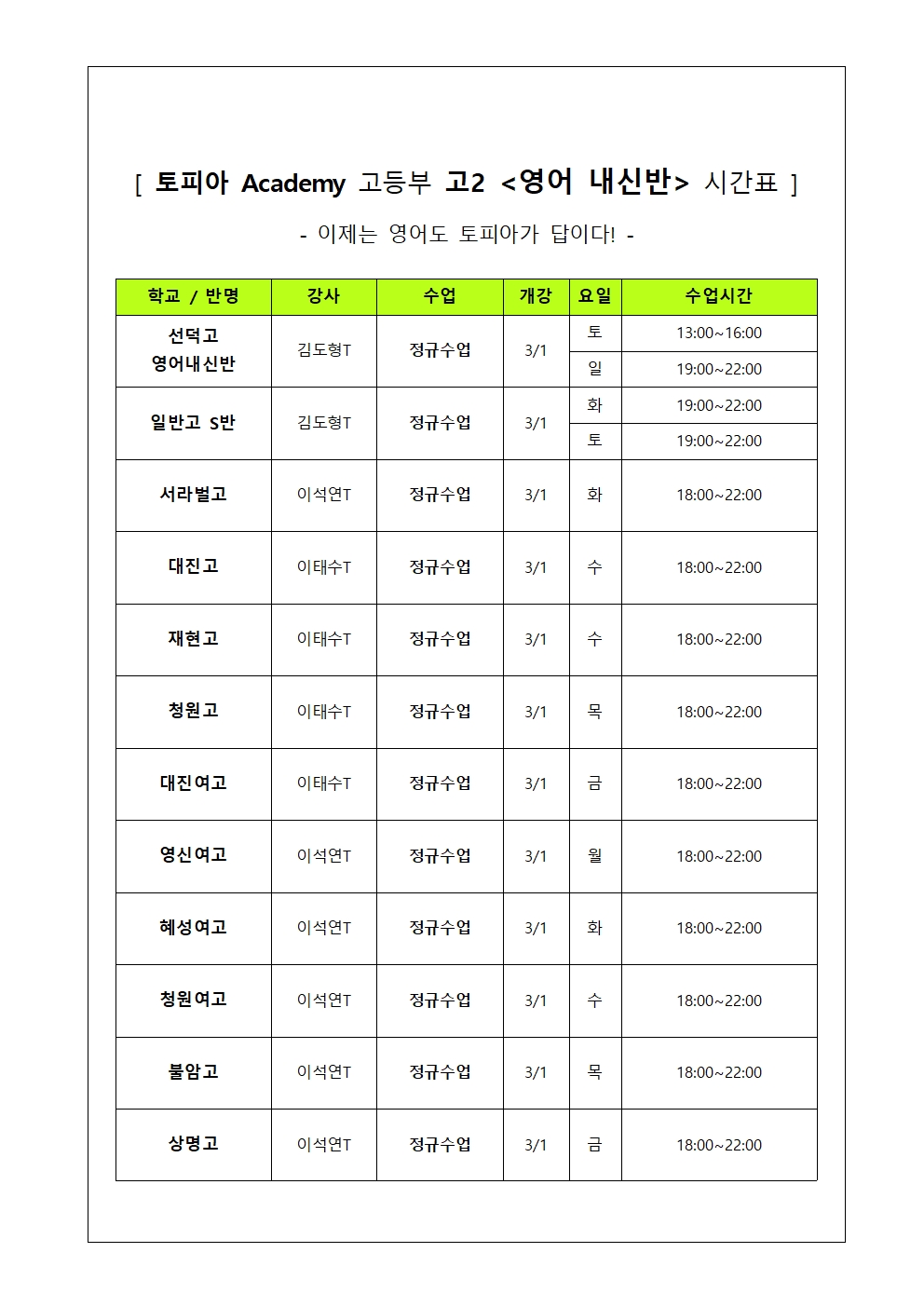 [TOPIA °íµîºÎ]°í2 3¿ù Çб³º° ³»½Å Àüü½Ã°£Ç¥