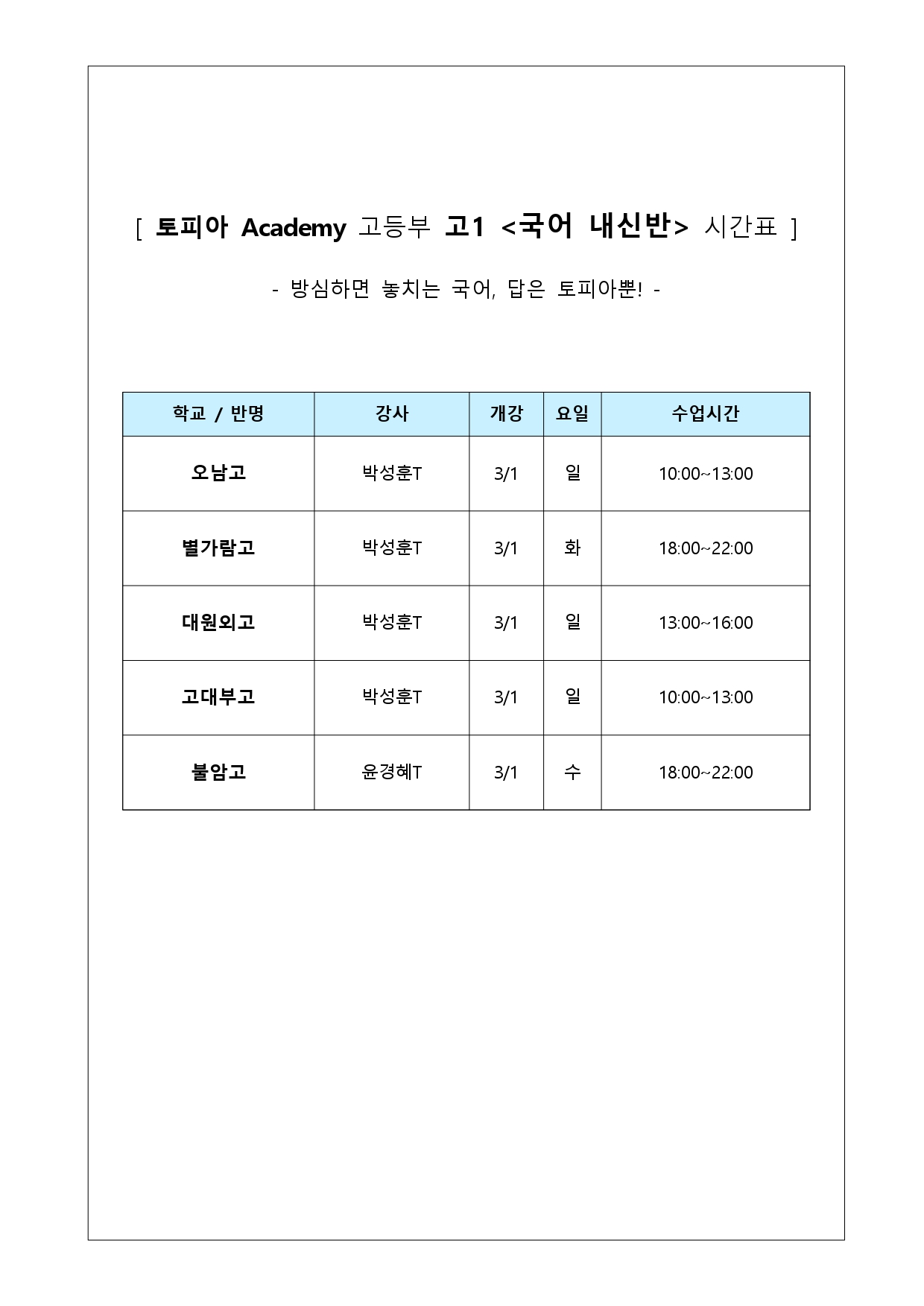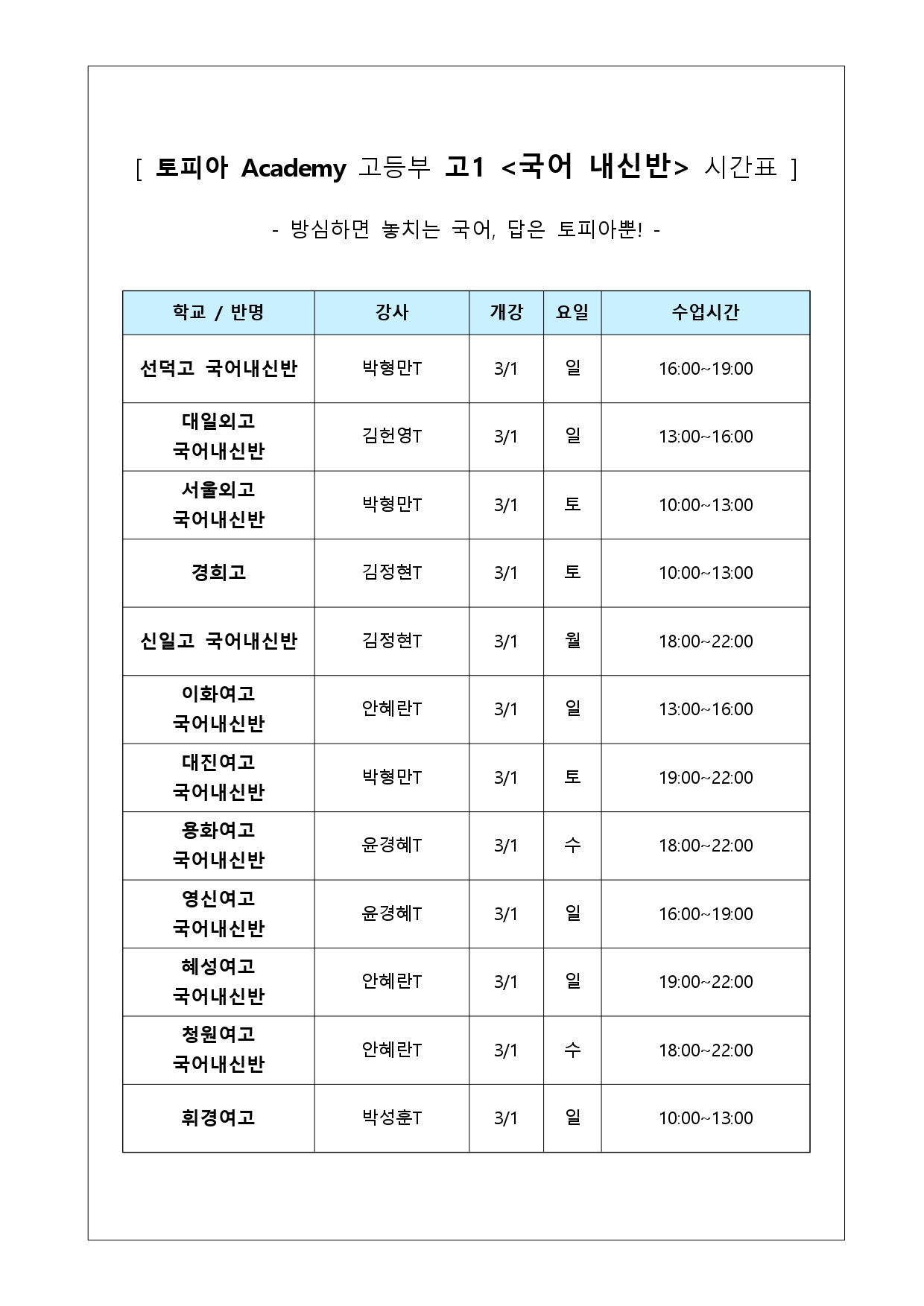 [TOPIA °íµîºÎ]°í1 3¿ù Çб³º° ³»½Å ±¹¾î½Ã°£Ç¥