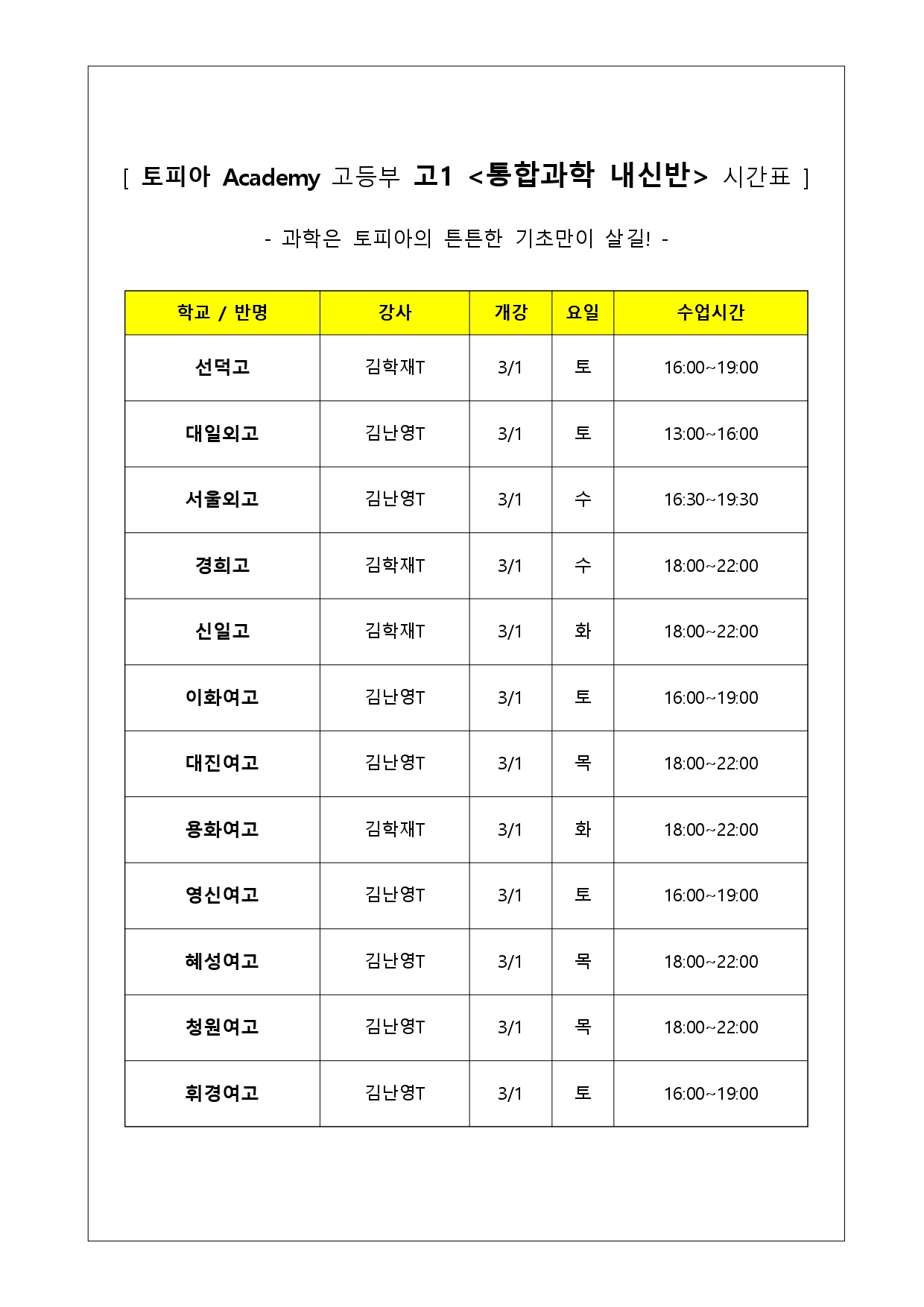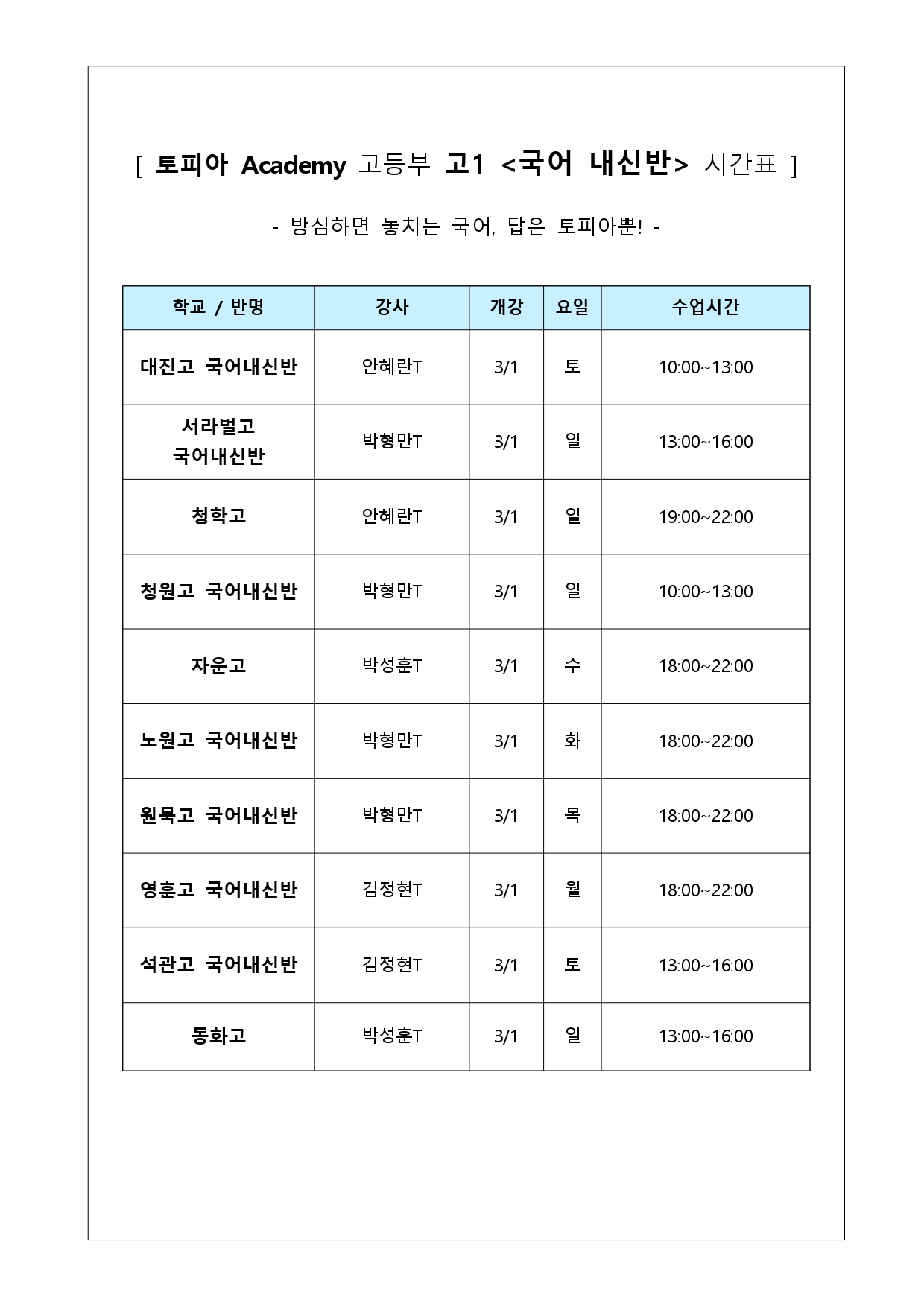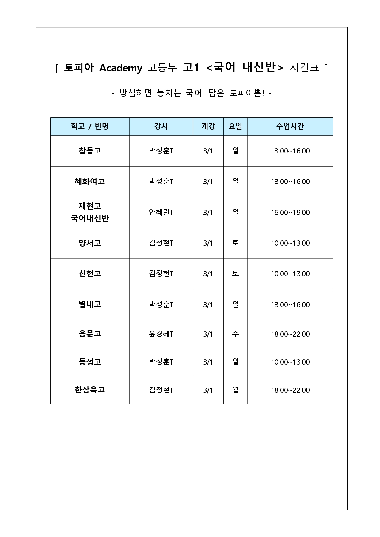 [TOPIA °íµîºÎ]°í1 3¿ù Çб³º° ³»½Å Àüü½Ã°£Ç¥