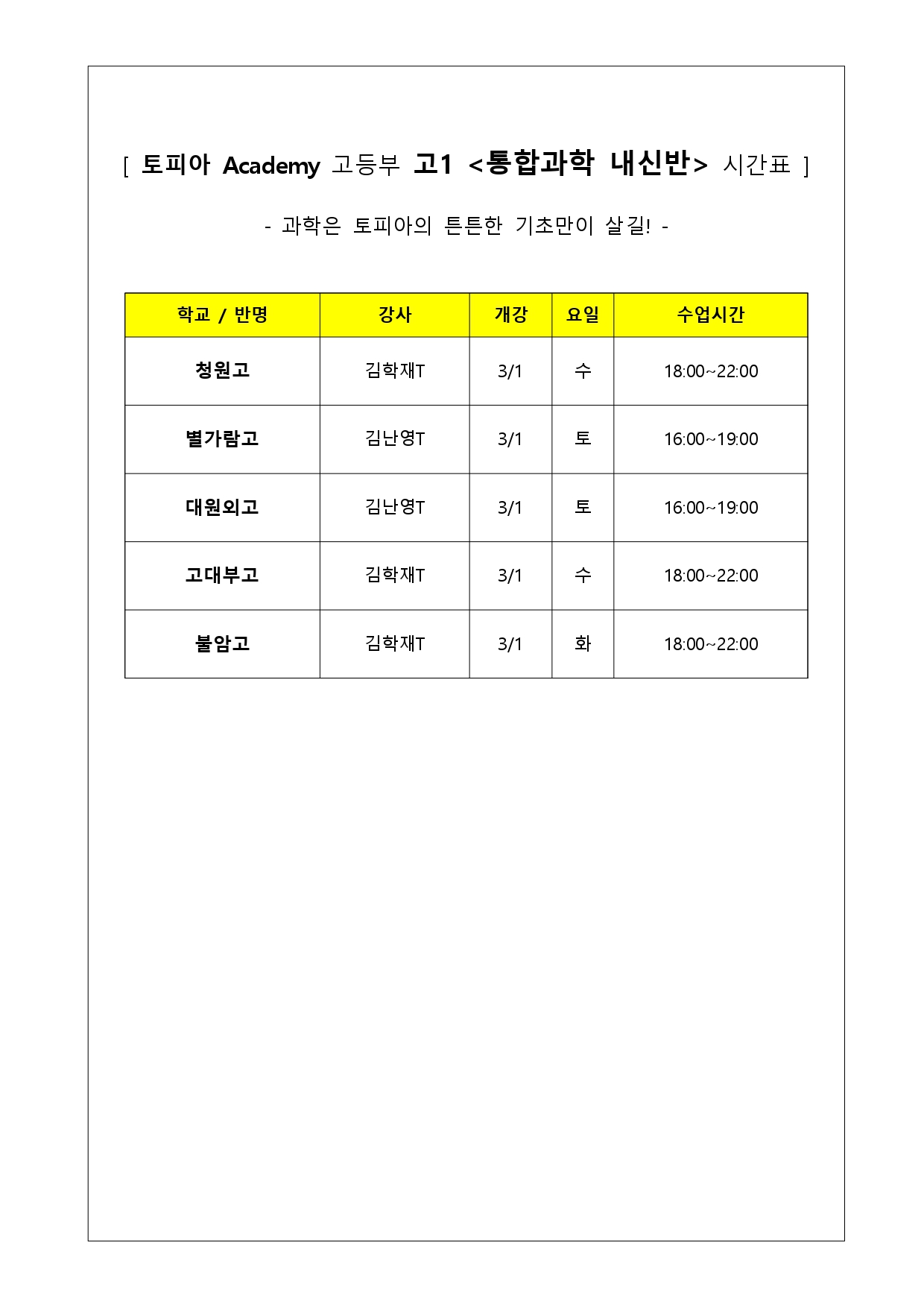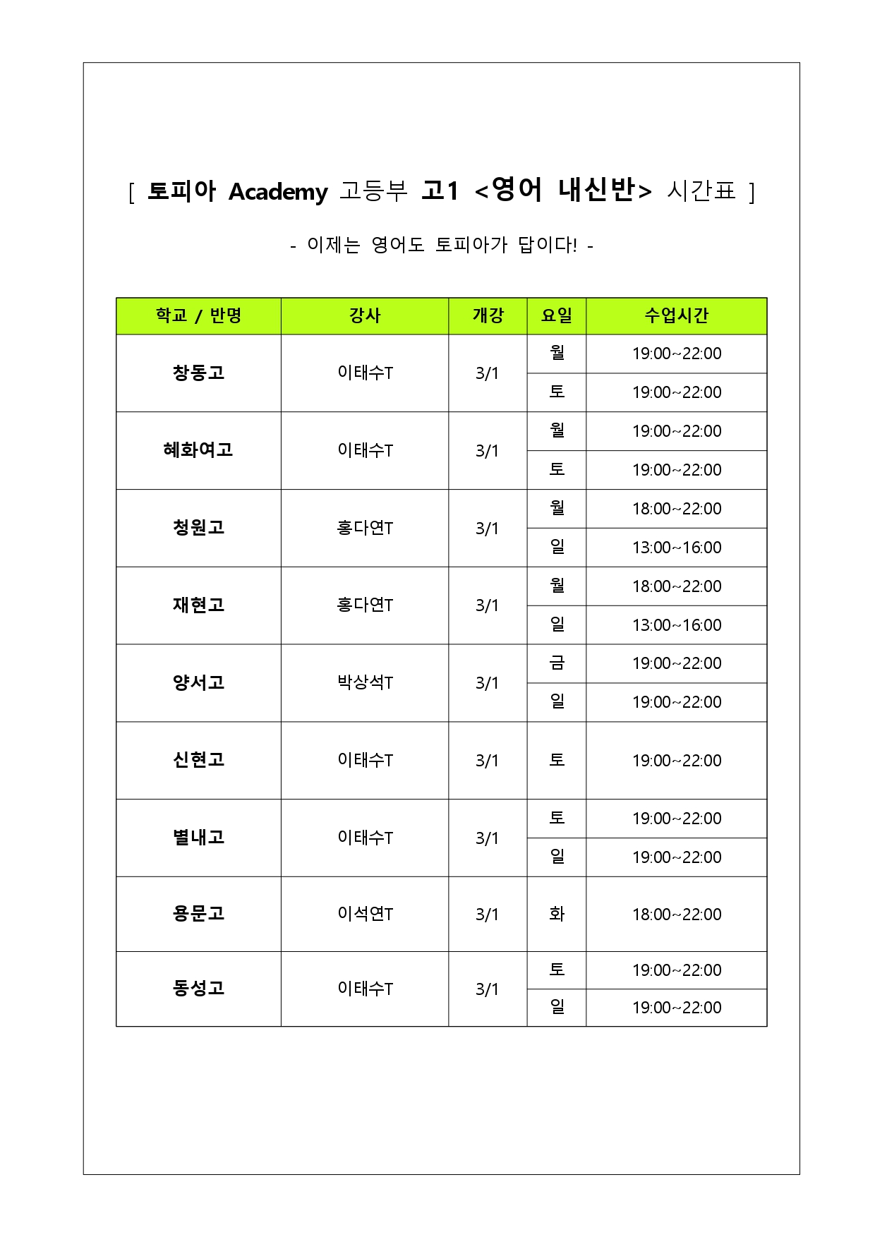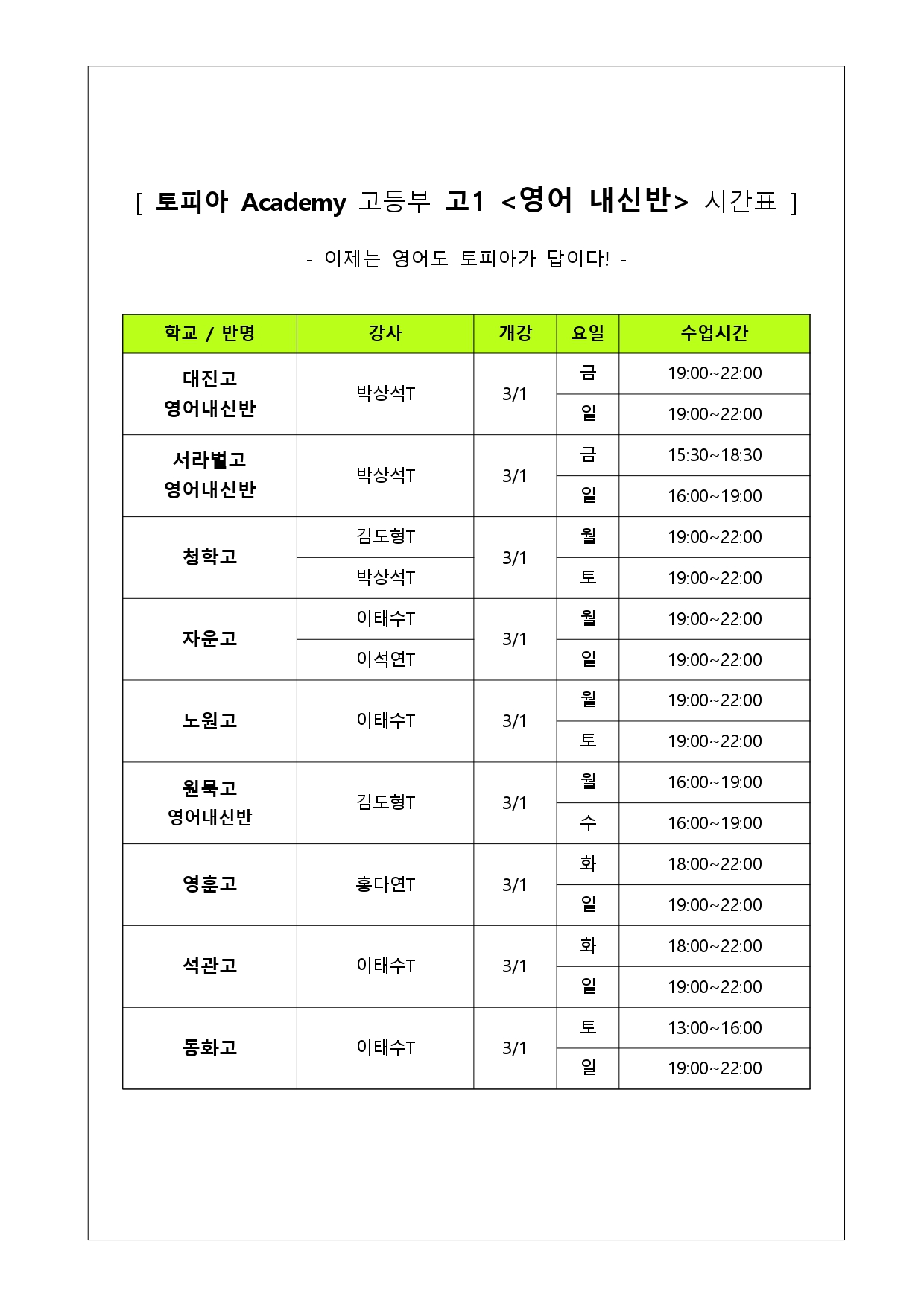 [TOPIA °íµîºÎ]°í1 3¿ù Çб³º° ³»½Å Àüü½Ã°£Ç¥